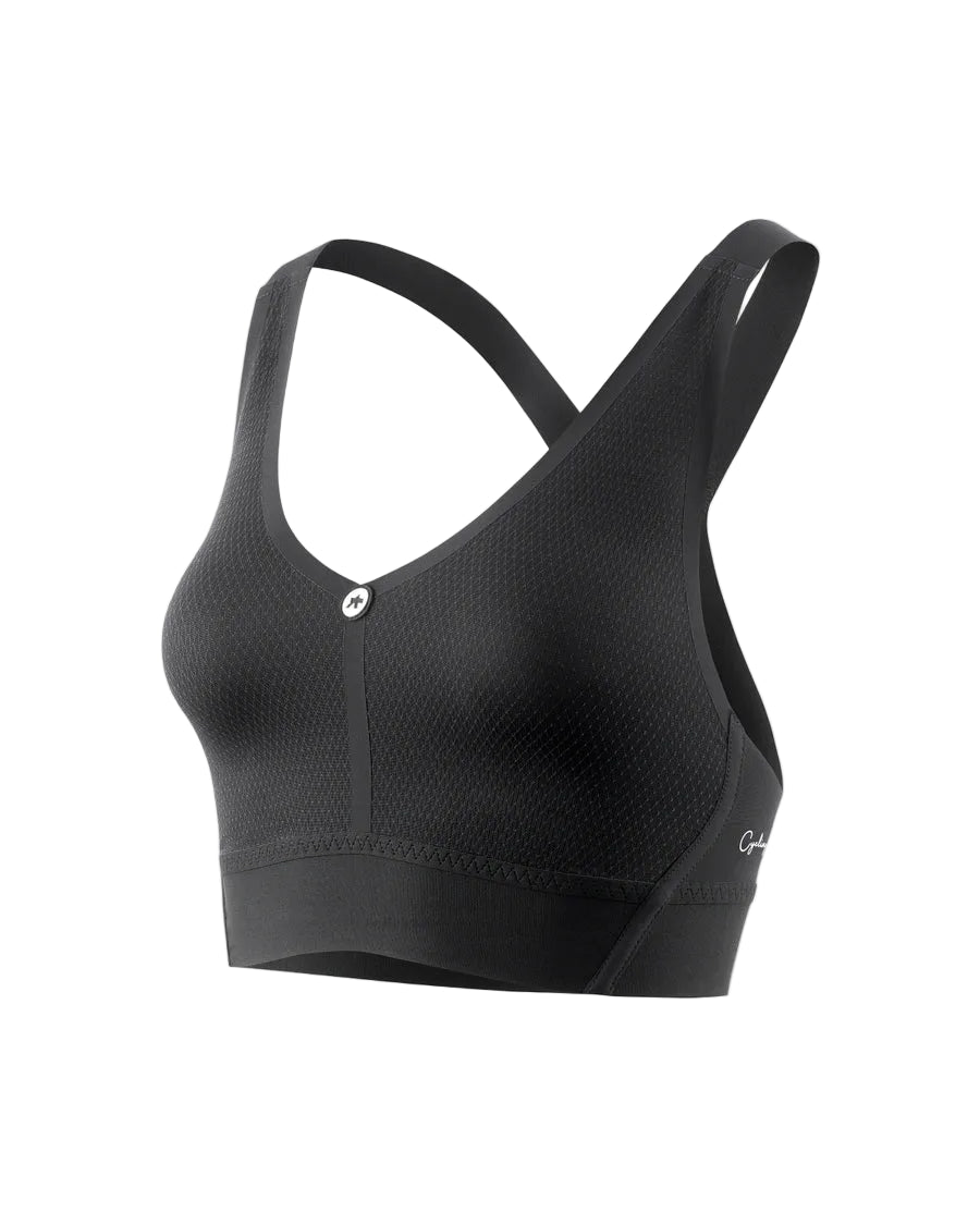 Il design posteriore con struttura a Y aumenta la stabilità del capo durante i movimenti e permette di utilizzare facilmente dispositivi di monitoraggio come i cardiofrequenzimetri, mantenendo un contatto stabile con il sensore senza compromettere la vestibilità. Questa soluzione rende il reggiseno ciclismo donna Assos particolarmente adatto per cicliste che monitorano le proprie performance durante allenamenti e uscite su strada.