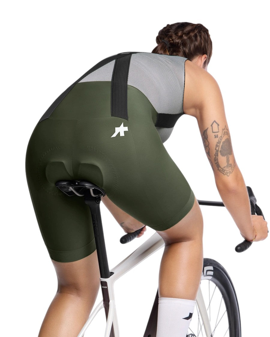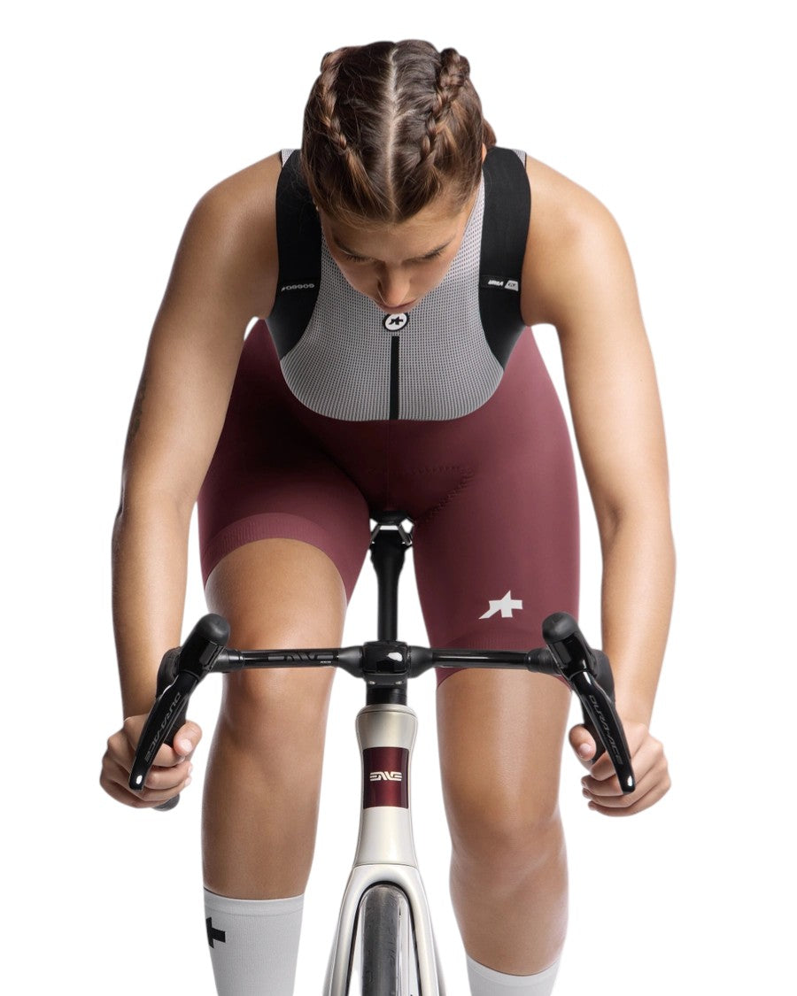 Il design della salopette ciclismo donna endurance Assos Uma GT S11 si basa su una costruzione ergonomica studiata per adattarsi alla posizione tipica della pedalata su strada. La struttura avvolge il corpo in modo naturale, riducendo i punti di pressione e garantendo libertà di movimento durante tutta la pedalata. Questo approccio permette alla salopette di seguire i movimenti del ciclista senza creare pieghe o spostamenti indesiderati del tessuto.
