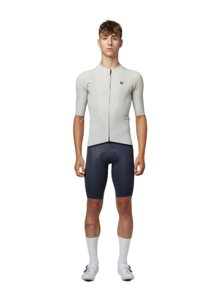 La costruzione utilizza un unico pannello principale con cuciture ridotte allo stretto indispensabile, eliminando punti di pressione sulle spalle e diminuendo il rischio di sfregamenti durante le lunghe distanze. Il tessuto in microfibra elasticizzata ad alta densità, composto da 73% poliammide e 27% elastane, garantisce elasticità bidirezionale e un’aderenza precisa che segue l’anatomia del ciclista senza creare costrizioni. Grazie a questa struttura, la maglia ciclismo race fit mantiene una vestibilità pulita anche in posizione aggressiva, riducendo pieghe e turbolenze.